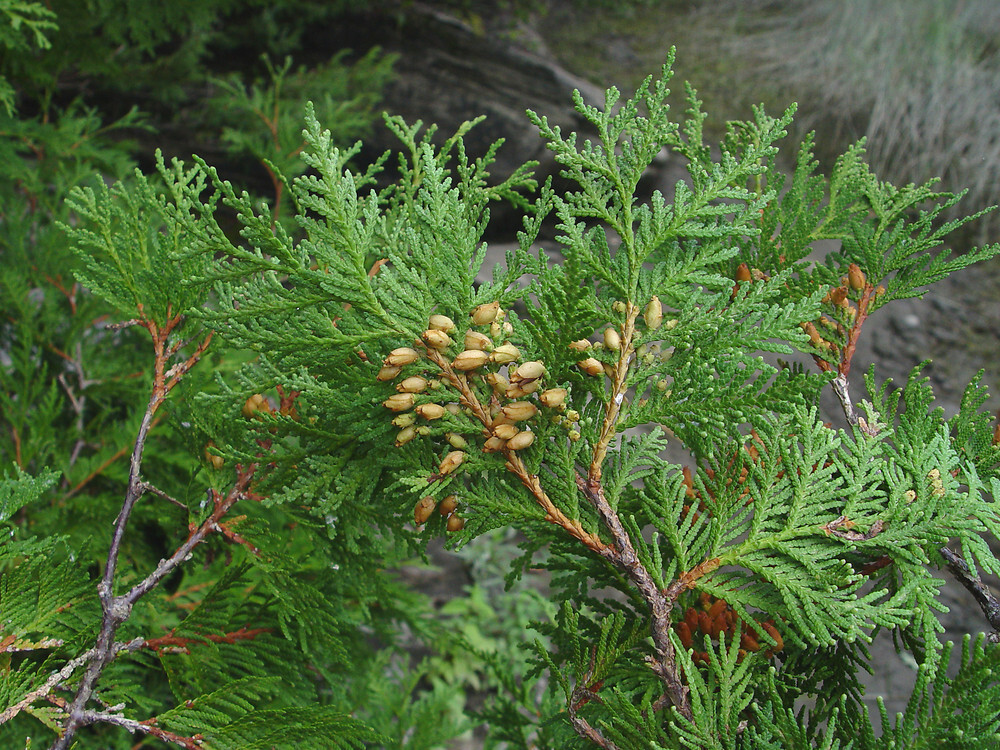 Thuja is also called northern white cedar and arborvitae. Because many very different evergreens go by the common name “cedar,” relying on this name can be problematic. Thuja has scales instead of traditional needles, which – (if you look very closely) grow opposite one another – in alternating branches on flat sprays. Small upright cones turn from yellow-green to brown as they mature. The stripy, fissured, fibrous bark can be reddish or grayish brown, and you may find small chunks of resin in its folds, which make fabulous copal-like incense. It grows in the American northeast and is commonly cultivated (Sibley, 2009). Thuja is credited for saving Jacques Cartier’s crew from scurvy, earning it the moniker arborvitae or “tree of life,” and was the first tree exported from the New World to the Old (Fergus, 2005). As we discussed earlier, researchers now suspect that Cartier’s crew misunderstood which plant Native Americans utilized and that it was more likely to have been white pine (Durzan, 2009). Nonetheless, its popularity has made thuja an important medicinal evergreen on both sides of the pond. As a topical or homeopathic remedy it fights impetigo, warts and papillomatous growths, genital infections, bacterial vaginosis, skin ulcer, hemorrhoids, fungus including Tinea species, and tumors (Brinker, 2008; Groves, 2016; Rajatrashmi et al, 1999; Moore, 2004; Moore, 1993). I personally see impressive topical anti-fungal effects with infused oils and salves. Internally, low (drop) or homeopathic doses stimulate innate immune function, increasing white blood cell count and bone marrow cells (Brinker, 2008; Moore, 2004). Animal studies of homeopathic thuja in 1 M, 200C and 30C potencies suggest immunomodulatory, anti-tumor, and anticancer activity without toxicity (Remya & Kuttan, 2015).